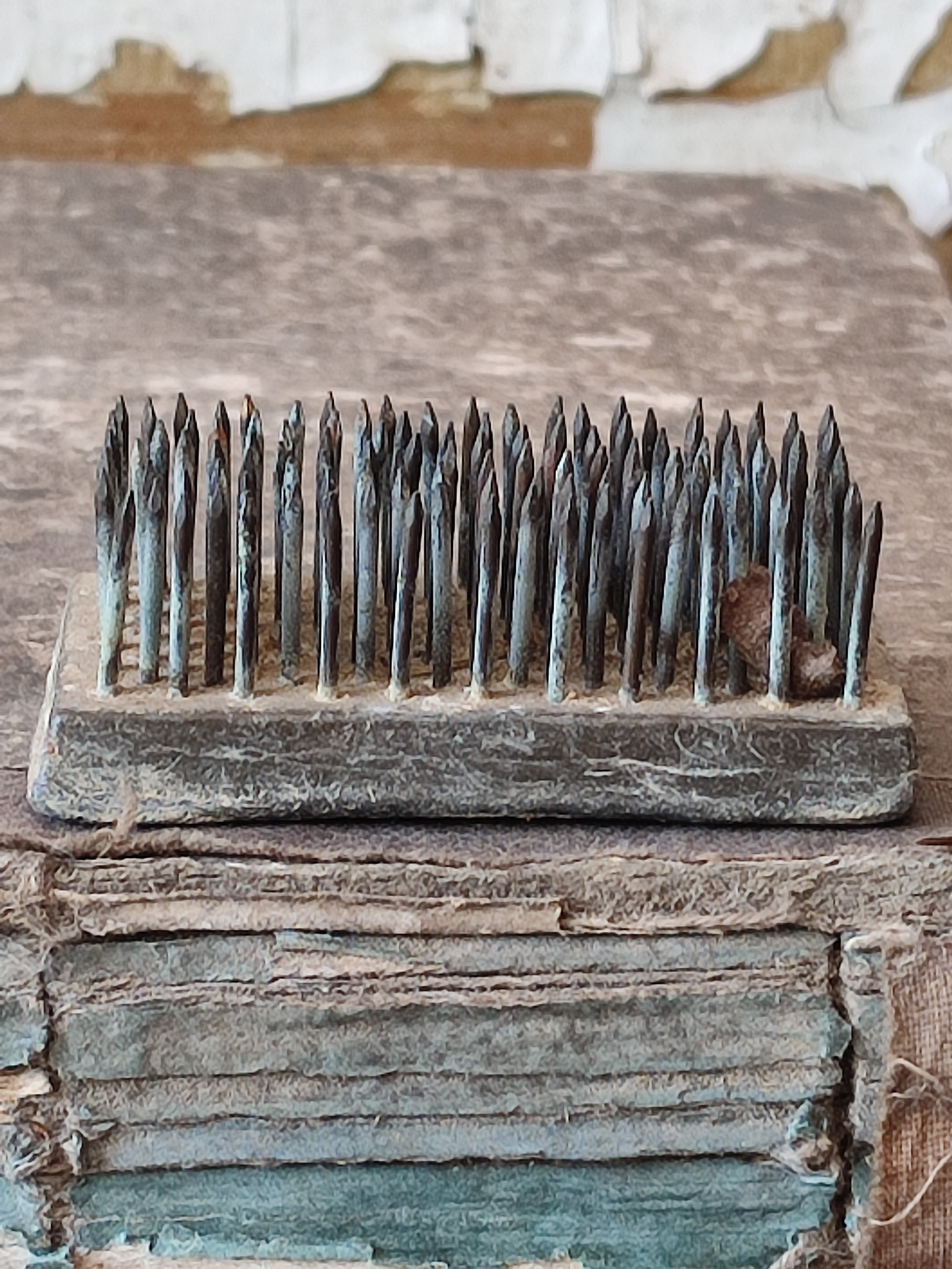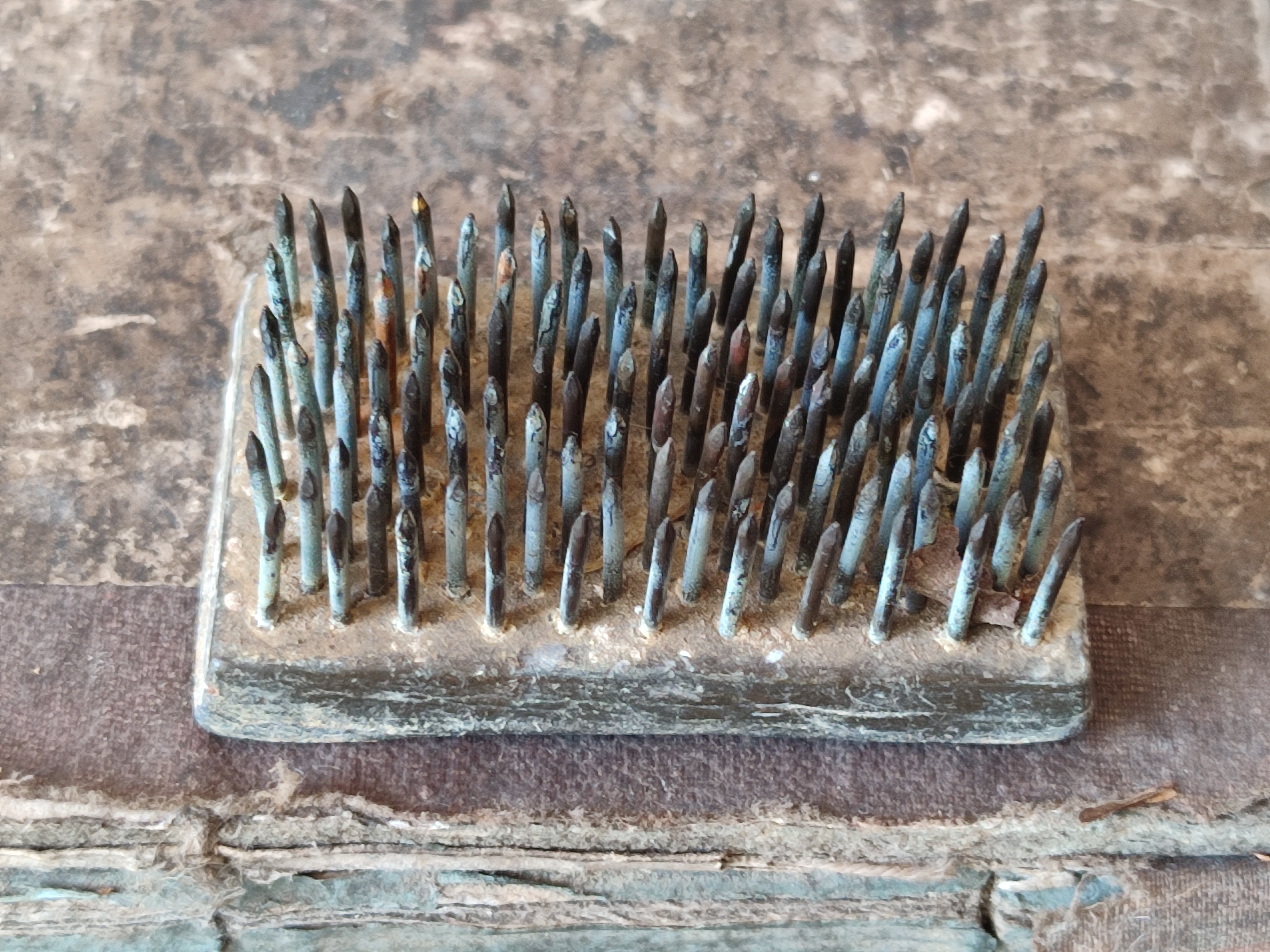 Oude inmiddels antieke flowerfrog, prachtig verouderd. Vroeger gebruikt als bloemstelen, nu mooi als decoratie met bijvoorbeeld een foto of print.