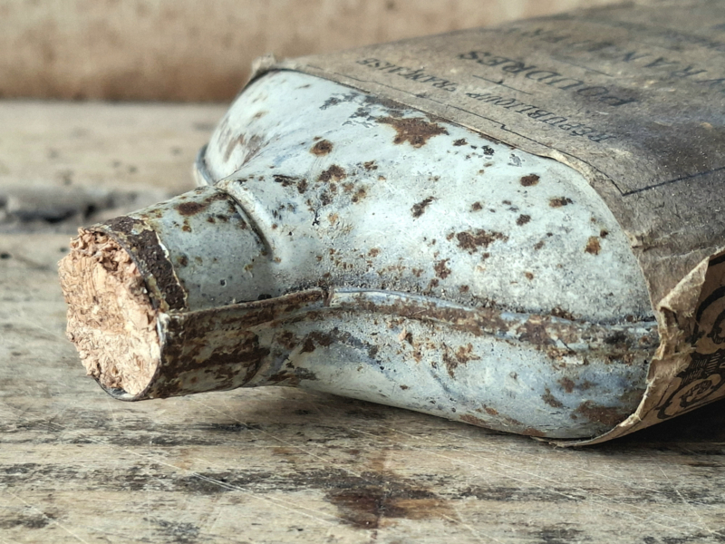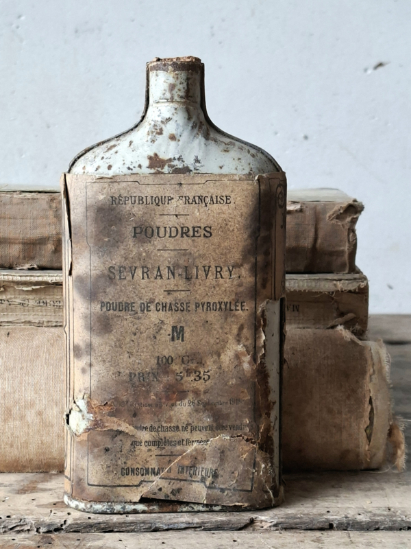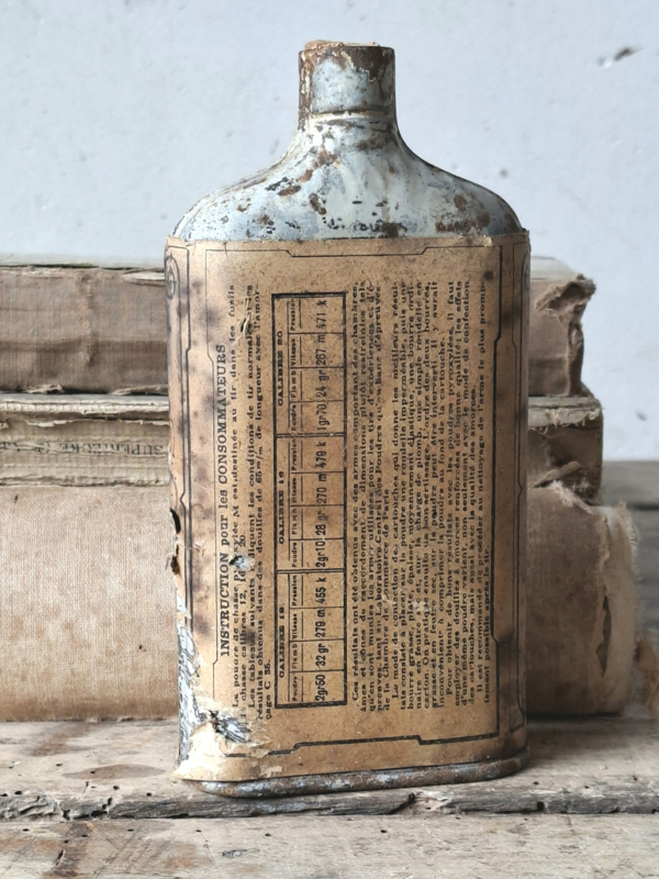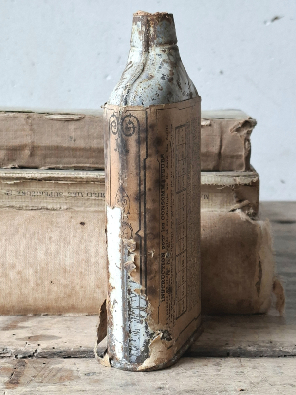 Oud frans hagelbusje, blikje. Door de jaren heen verouderd. Het blikje is leeg. Uit de eerste helft 1900.