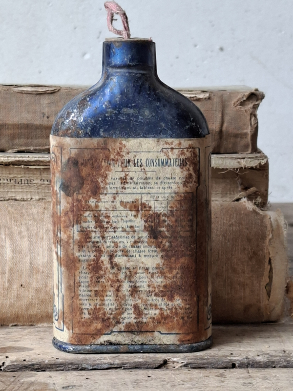 Artikelnummer: 251011Oud frans heel geleefd hagelbusje, blikje. Het is voor ongeveer 1/3 gevuld. Het blikje is roestig verouderd. Eerste helft 1900.