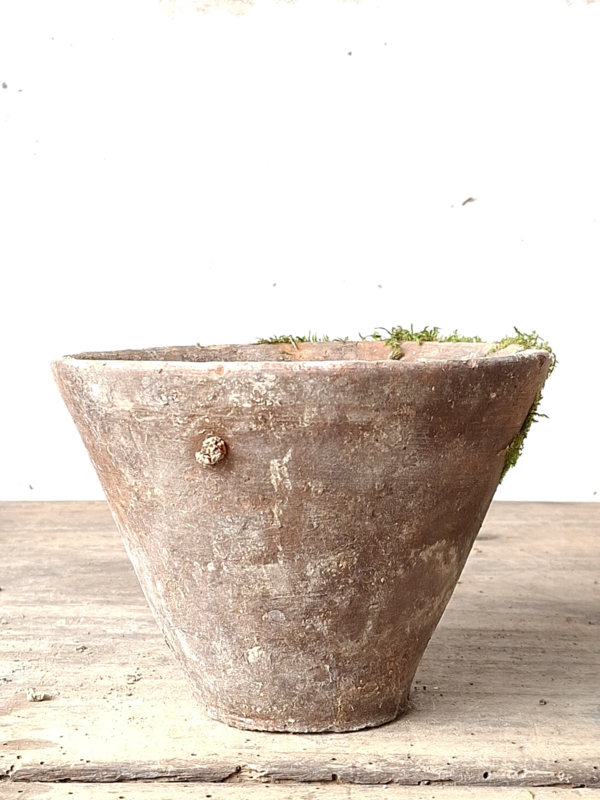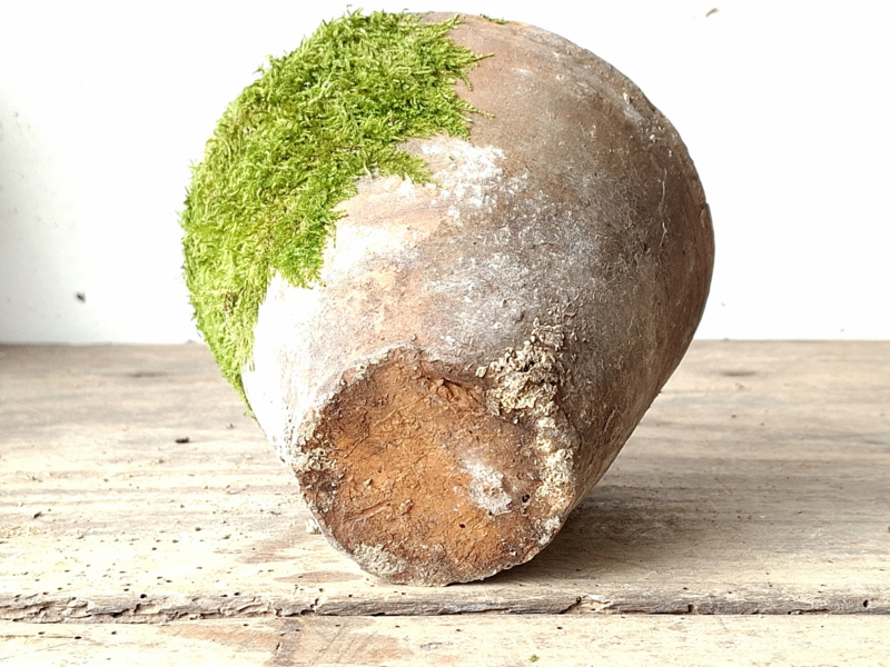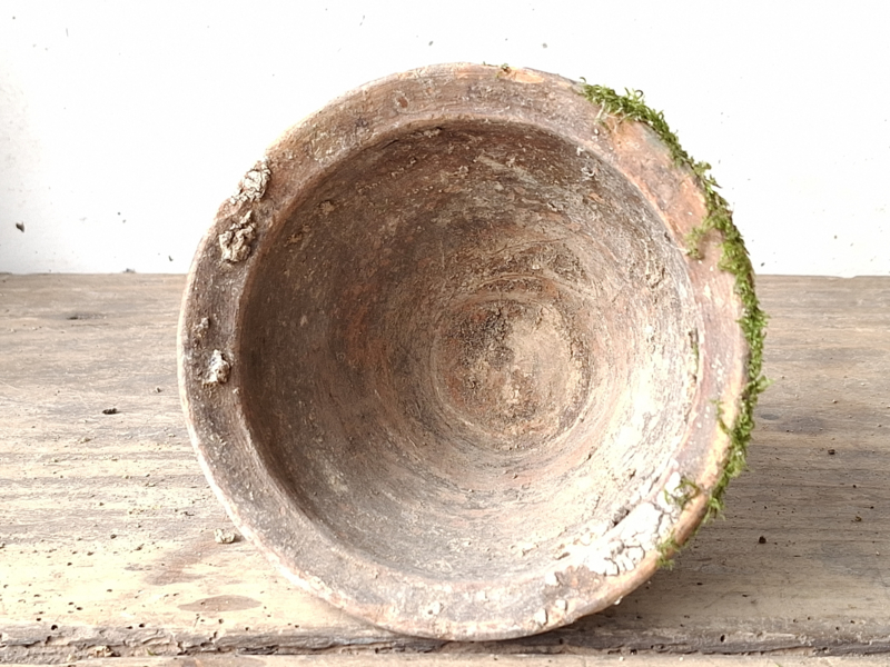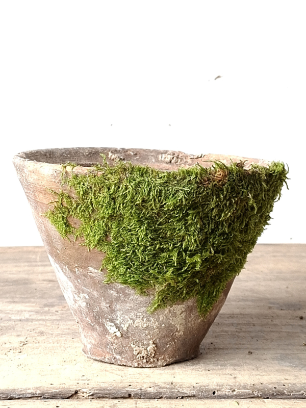 Artikelnummer: 251016Oude inmiddels antieke harspot. De mos is erop natuurlijke wijze opgekomen door het buiten liggen. Deze met de hand gemaakte potten hebben veel karakter.