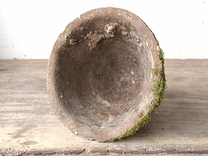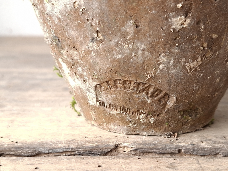Artikelnummer: 251017Oude inmiddels antieke harspot. Deze pot is gemerkt Lestage, de naam van het domein. Vroeger werden deze potten gemerkt door de eigenaar. De mos is erop natuurlijke wijze opgekomen door het buiten liggen. Deze met de hand gemaakte potten hebben veel karakter.