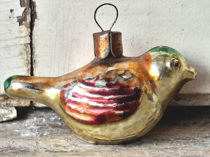 Oude vintage kerstbal, hangende vogel.