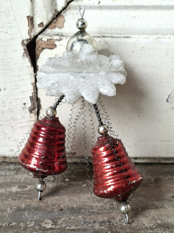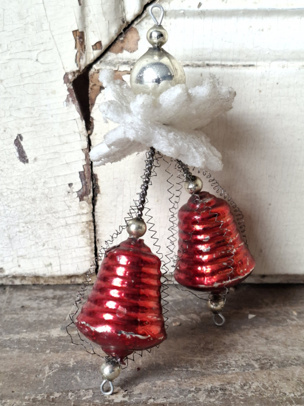 Oude vintage gablonzer, glaskralen en kerstklokjes.