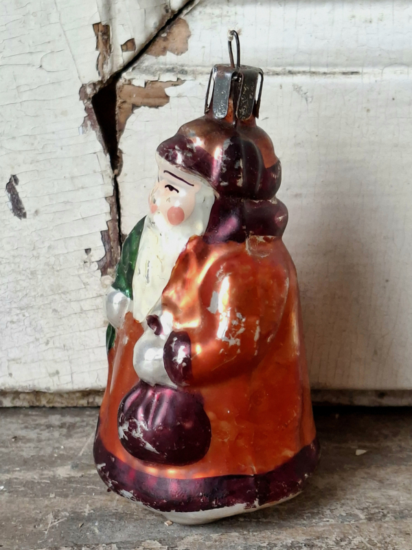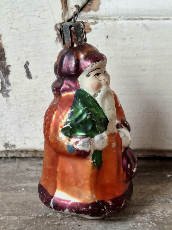 Oude vintage kerstbal, Vadertje Vorst. De verf is verouderd en geleefd, het hoedje is vast.