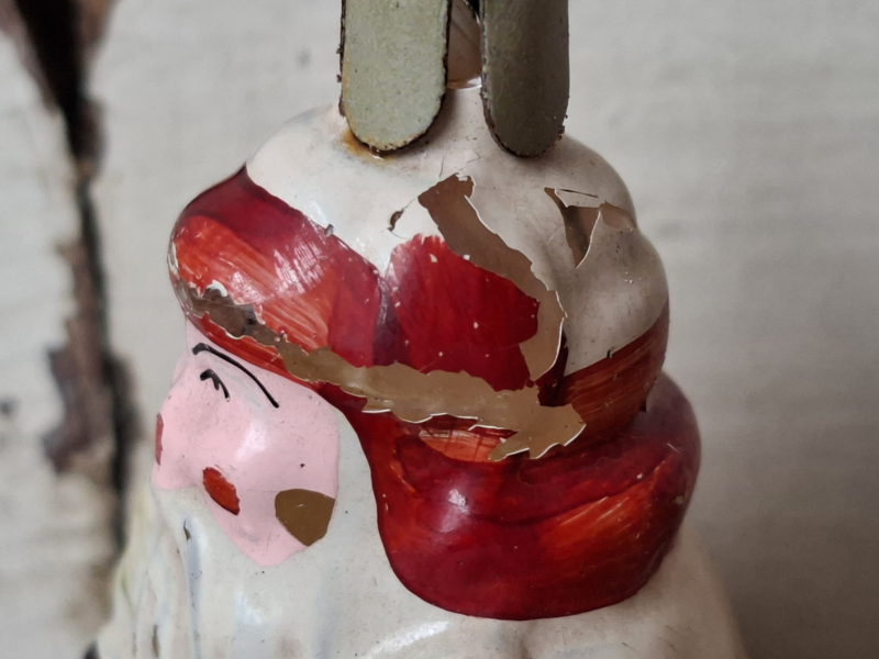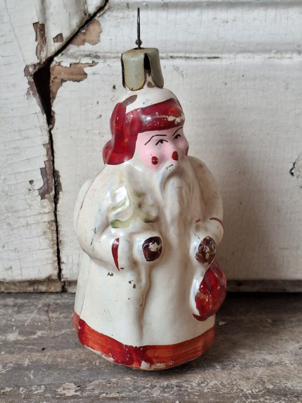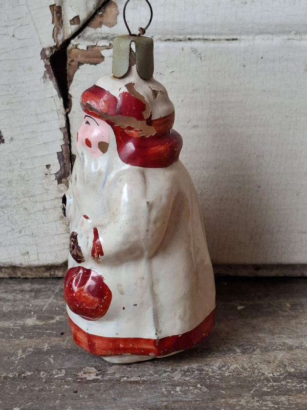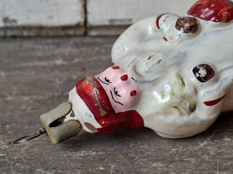 Oude vintage kerstbal, Vadertje Vorst. De kerstbal heeft verfverlies. Door de leeftijd verouderd en geleefd. Het hoedje is vast.