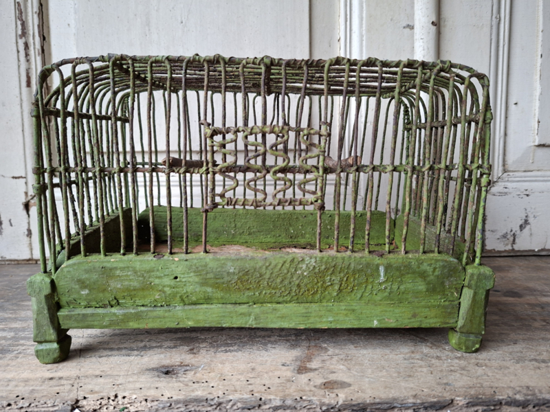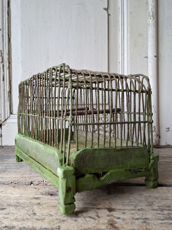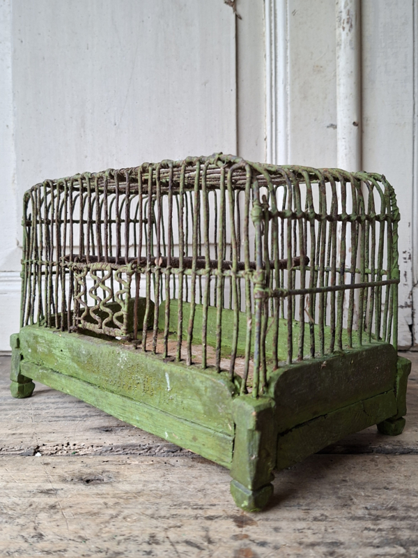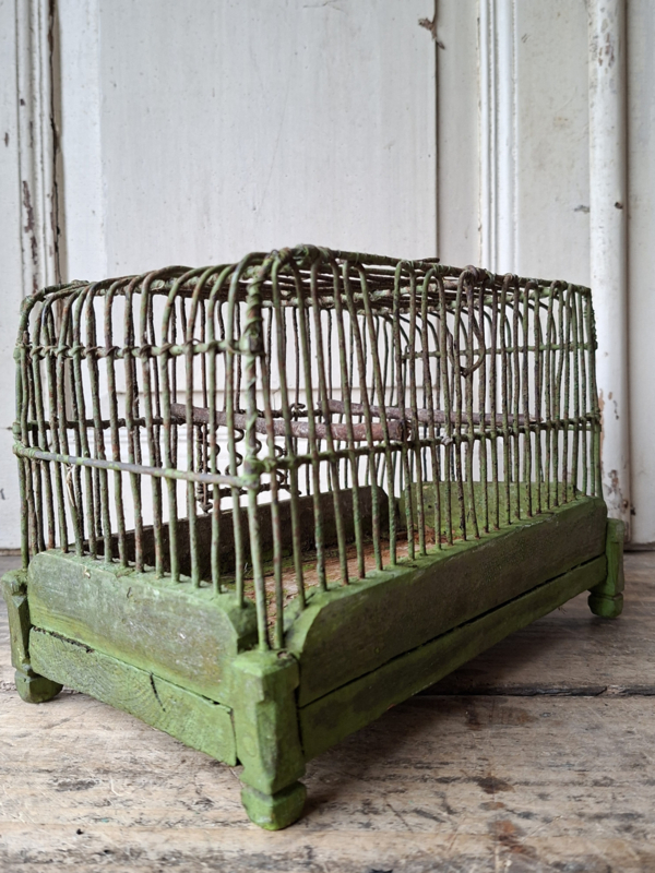 Artikelnummer: 251147Dit oude inmiddels antieke kleine vogelkooitje is een zeldzaamheid. Het is sl zo oud dat het prachtig geleefd verouderd is. Het ijzer van de spijltjes is dik en stevig. Het hout aan de binnenzijde geleefd maar heel. De hele oude verf is mooi geleefd . Het kooitje heeft een schuifdeuren dat open en dicht kan. Door het kleine formaat geef je het makkelijk een plekje.