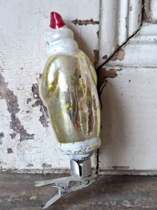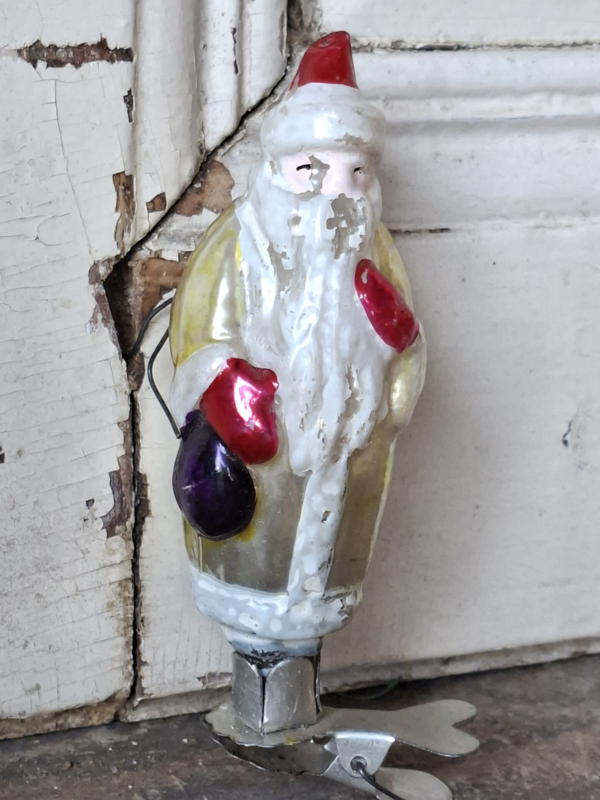 Oude vintage kerstbal op knijper, vadertje vorst.