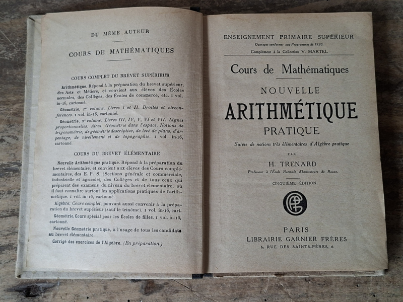 Oud inmiddels antiek frans leerboek. Dit rekenkundig (Arithmétique) boekje is mooi verouderd. Dit school leerboek is van 1920 en heeft een harde kaft. Oude franse boeken zijn prachtig als decoratie.