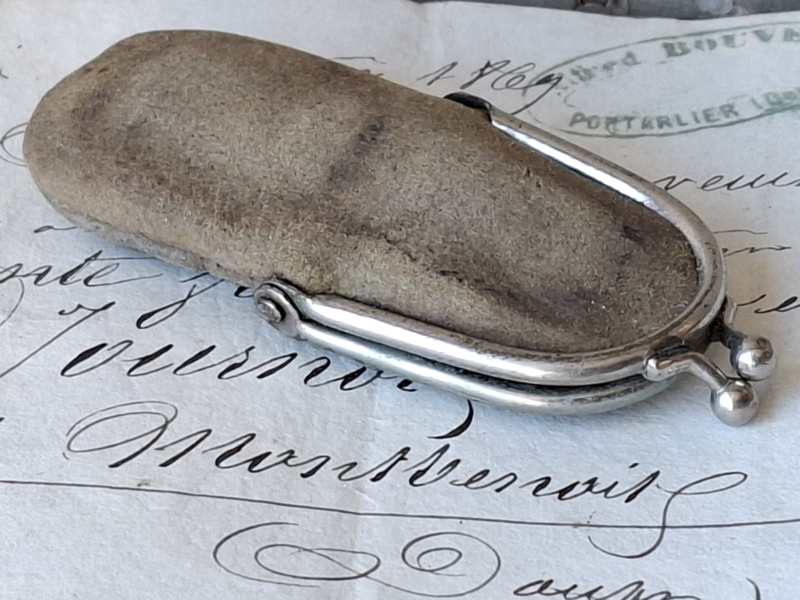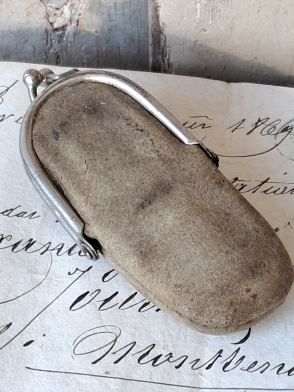 Oud frans muntenknipje. Dit knipje is gebruikt om muntjes in te bewaren, je had ze ook waar een klein zakmesje of iets dergelijks in bewaard werd.