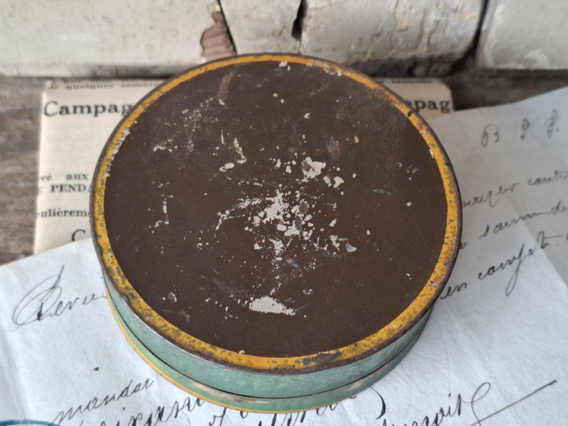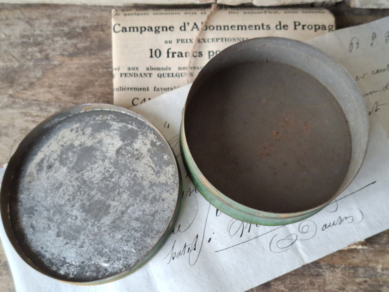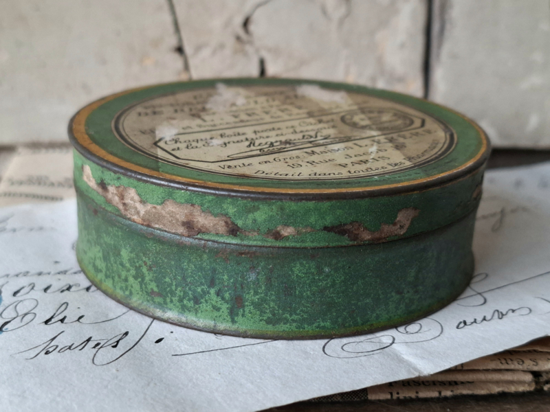 Heel oud frans pharmacie blikje van pharmacien a Paris, L.Frere. Het blikje is geleefd verouderd. In het blikje zaten ooit tabletten tegen hoest.