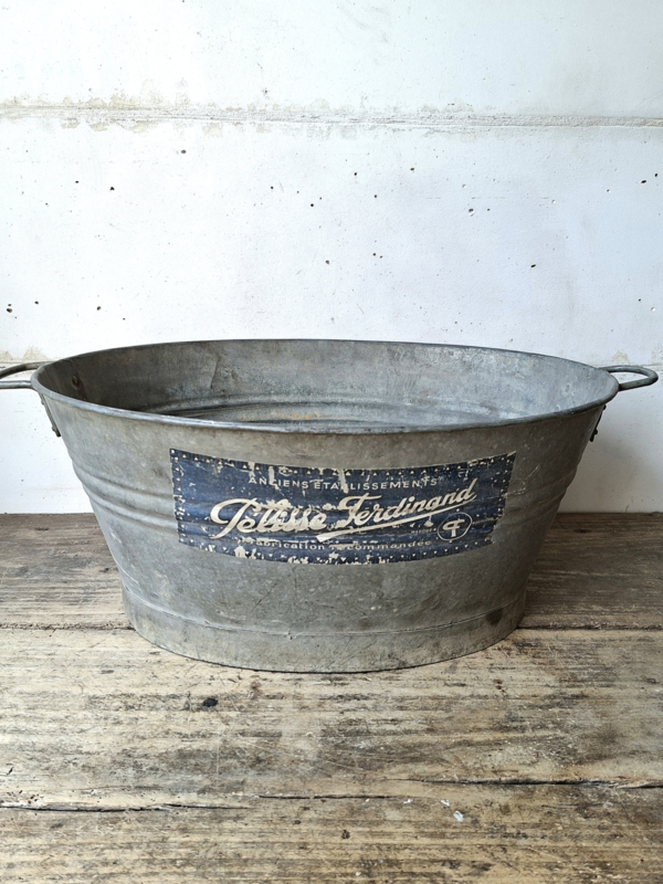 Zinken TeilHele oude franse zinken teil met het originele etiket. Deze teil is gemaakt door Anciens Etablissements Ferdinand fabrication commondée, oude gevestigde fabriek, Fernández, productie op bestelling. Door het etiket is dit een…