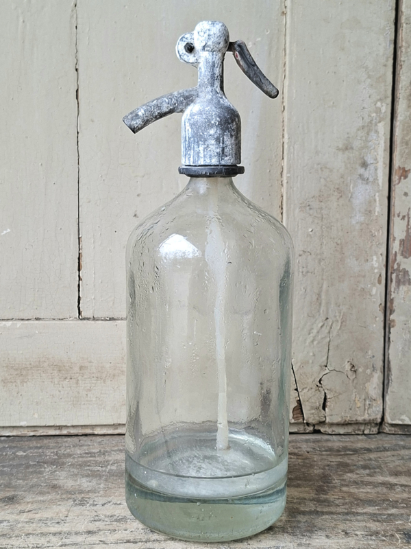 Spuitfles HelderSpuitfles van helder glas met een mooi verweerde afsluiting. In de binnenzijde restant van de oude inhoud. De spuitfles heeft de glazen riet in de fles.