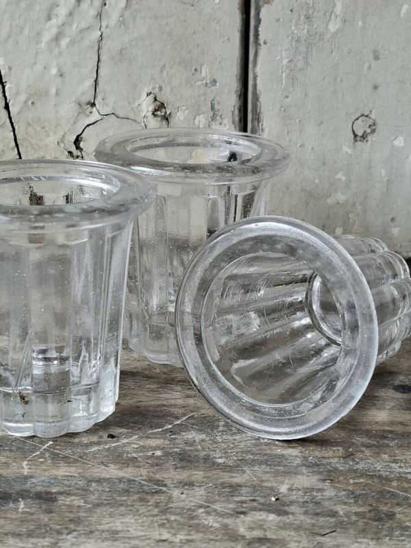 Klein ConfituurglaasjeDeze hele oude franse confituurglaasjes van dik glas kom je zelden tegen. Ze zijn te klein als waxinelichtjes houder.