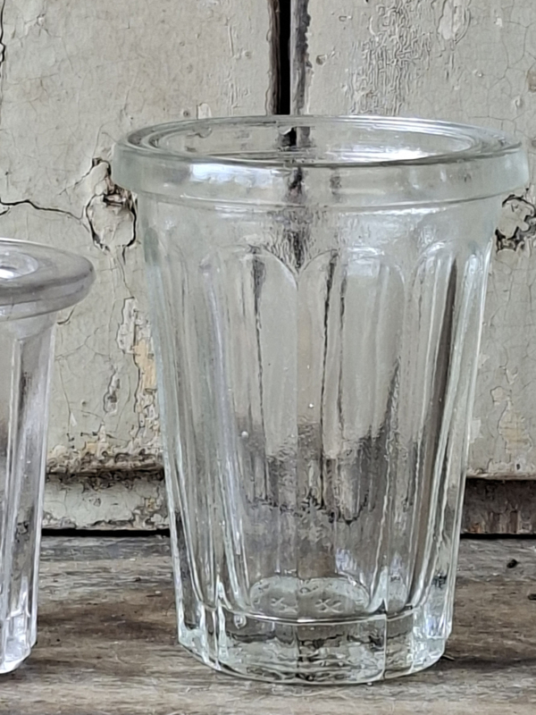 Klein ConfituurglaasjeDit kleine franse confituurglaasje van dik glas kom je zelden tegen. Het is te klein om te gebruiken als waxinelichtjes houder.