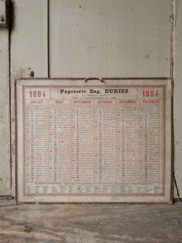 Calendrier 1894Deze hele oude franse kalender uit 1894 is prachtig verouderd. De kalender van karton heeft door de ouderdom zeker sporen. Aan de voorzijde de eerste helft van het jaar, de achterzijde heeft de tweede helft van het jaar. Aan de…
