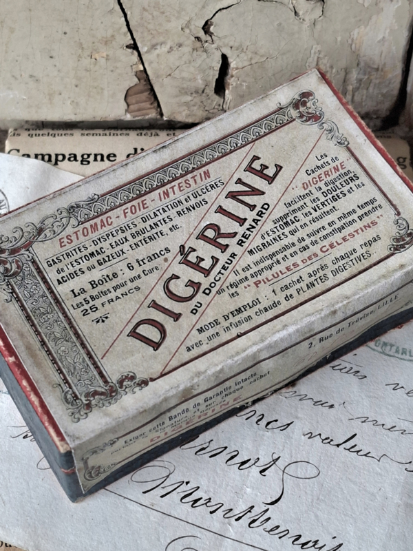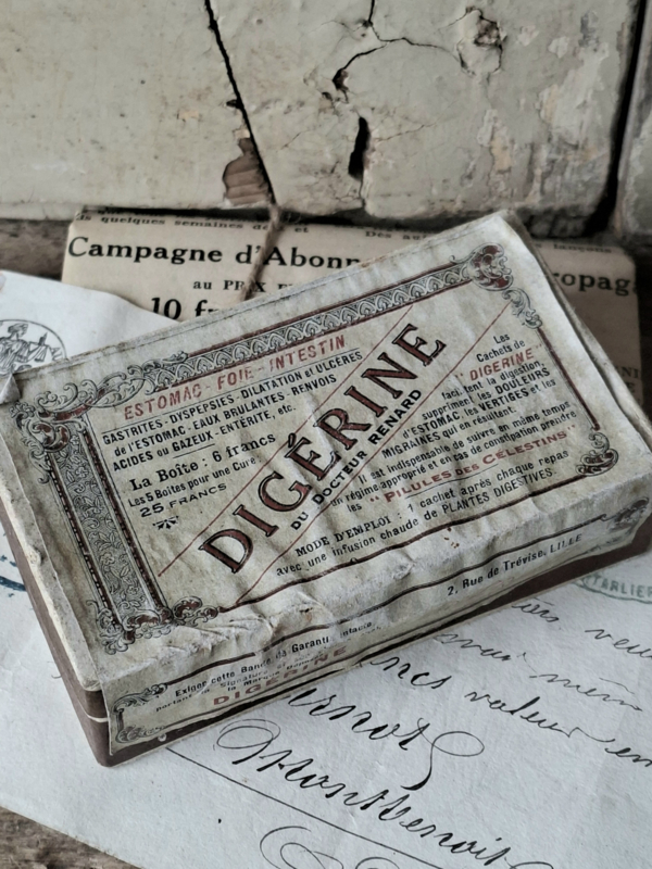 Pharmacie DoosjeHeel oud frans pharmacie doosje, apothekers doosje Digerine. Het doosje is door de ouderdom geleefd verouderd. In het doosje van Docteur du Renard, zaten ooit tabletten voor de maag. Oude pharmaciedoosjes zijn prachtig als…