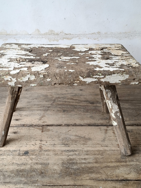 Klein KrukjeKlein oud krukje, vensterbankkrukje. Het krukje heeft de originele verflagen verweerd en verouderd. Mooi detail zijn de zwarte pootjes. Het krukje heeft oude houtwormsporen, het meest op twee pootjes. Zie de twee laatste…