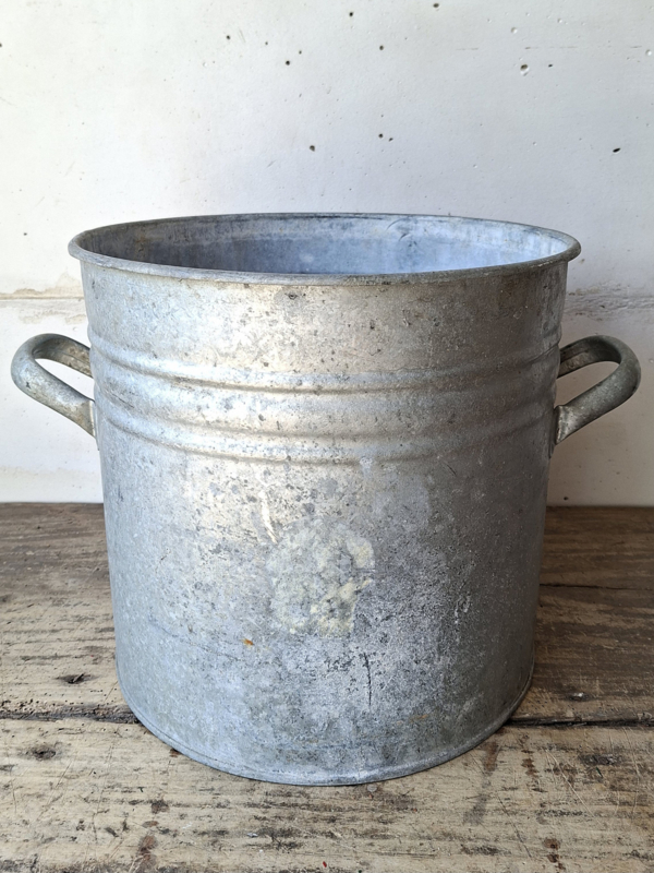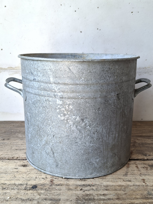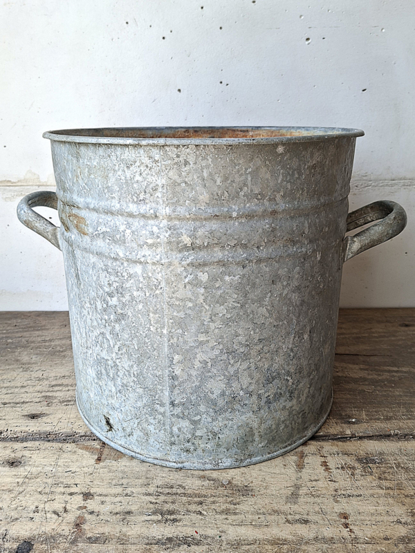 Zinken TonOude zinken ton, verweerd zink. Er zijn geen zichtbare gaatjes, niet getest op waterdichtheid. Oud zink is prachtig in de tuin.