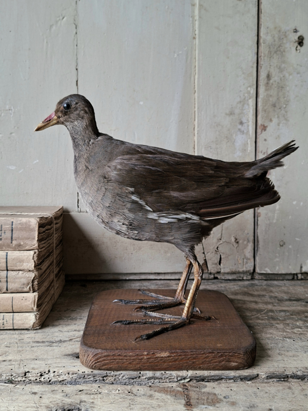 WaterhoenOude opgezette waterhoen. De waterhoen is met oog voor detail opgezet en zit goed in de veren. De waterhoen staat op een houten sokkel.