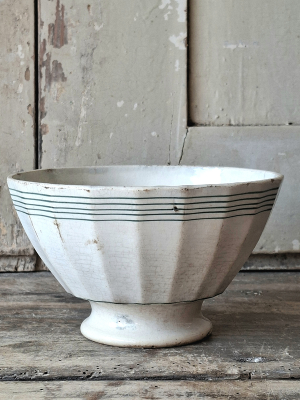 Spoelkom de GienHele oude franse spoelkom. Door de ouderdom en gebruik heeft het zo zijn sporen. De streepjes zijn groenig van kleur. Aan de onderzijde gemerkt Porcelaine Opaque de GIEN.