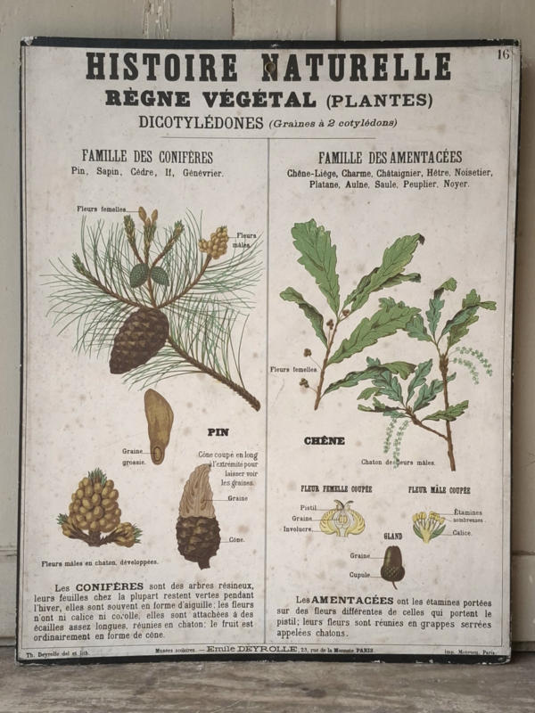 SchoolplaatOude franse vintage schoolplaat. Deze schoolplaat van karton is origineel en authentiek. Op de afbeeldingen zijn. spar en eikentak.