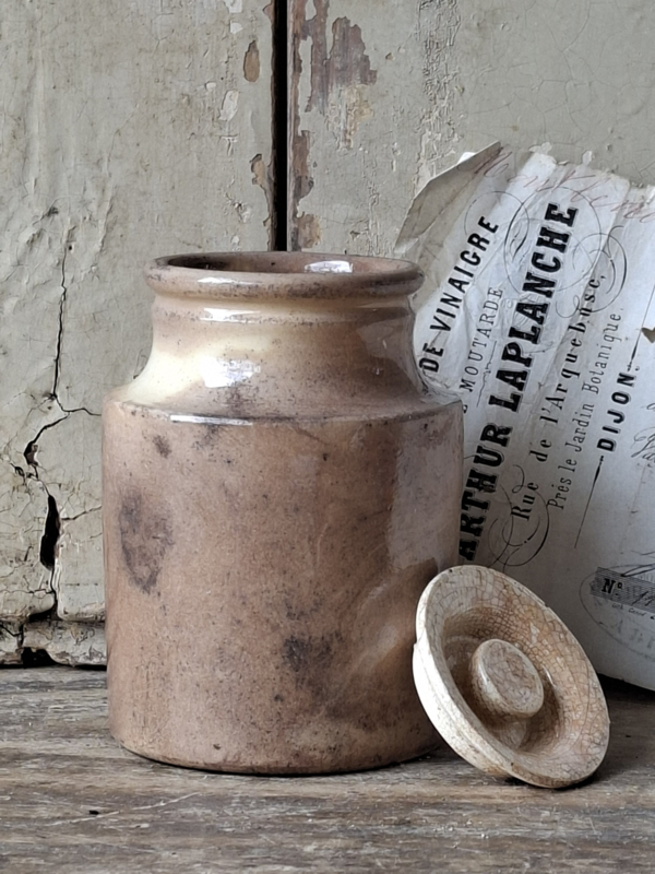 Zalfpotje met DekselZelden kom je een zalfpotje tegen met deksel! Deze heeft de originele deksel, hoe bijzonder. Het kleine zalfpotje is zwaar beboterd en gezien de ouderdom nog in een mooie staat.